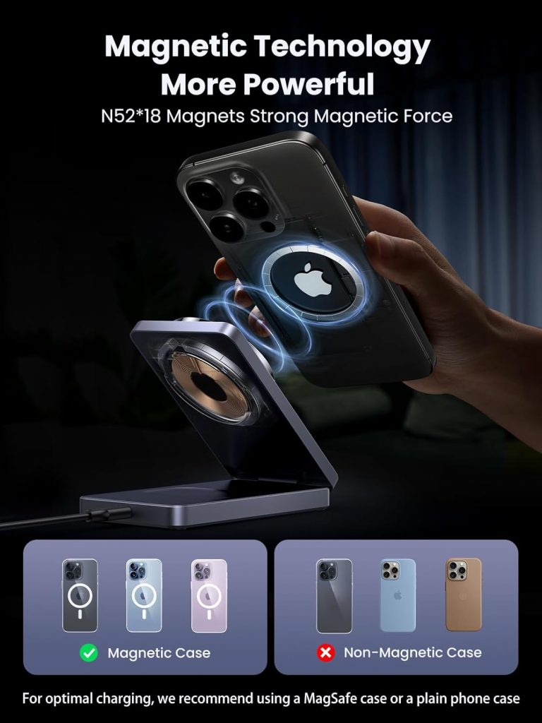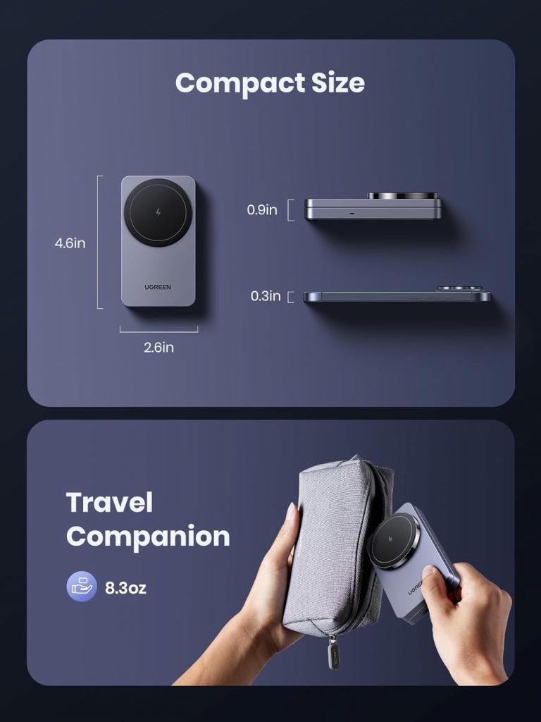 - Hỗ trợ sạc kép: Sạc đồng thời iPhone và AirPods hoặc thêm thiết bị qua cổng USB-C PD.