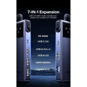 | Đầu ra | 1 x HDMI 4K@60Hz 2 x USB 3.0 (5Gbps) 1 x USB 2.0 1 x USB-C 3.0 (truyền dữ liệu) 1 x USB-C PD 100W 1 x Ethernet RJ45 1Gbps 1 x khe thẻ SD/TF (104MB/s) |